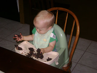 During lunch Allyssa didn't eat any cake. She had fun playing with it though. We offered her some more after supper because what's a birthday without cake??!! She ate a bite which thrilled Daddy and Mommy!
